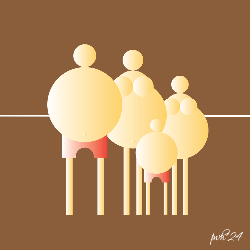 This artwork serves as a visual metaphor for ‘bayanihan’—the spirit of communal unity and collective effort—which begins within the family and extends outward to the broader Filipino society. Through its simplicity, *Family* reflects the profound significance of kinship in shaping and preserving Filipino identity.