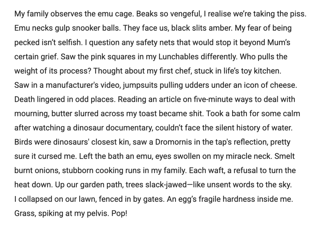 This poem was first published in the Barbican Young Poets Anthology, 2024.
